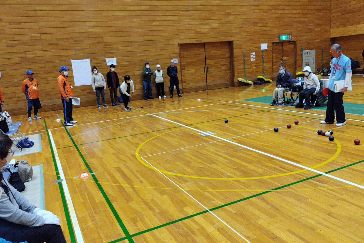 サンライズイーグル江田では、毎週日曜日にパラリンピックの正式種目であるボッチャを楽しむ教室を開催しています。ボッチャは障がい者のために考案されたヨーロッパ発祥のスポーツで、別名「地上のカーリング」とも呼ばれています。